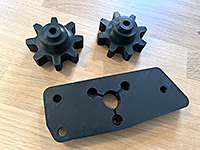You get the PLA drive gear, the PLA mounting plate, the ROPS-mounted switch housing (for 2x3 steel tubing ROPS), and 1 spare PLA drive gear.