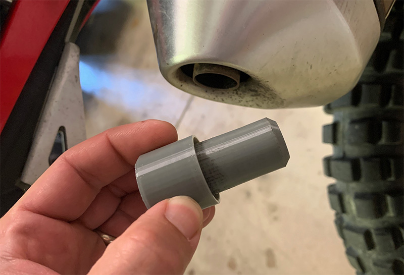Completely seals up the exhaust pipe opening on the stock exhaust of the Honda CRF450L for washing. Built in lip extends past the edge of the exhaust when inserted.