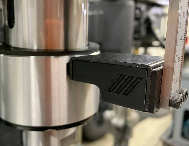Fits the Precision Matthews PM-728VT Milling Machine. Solves the problem where the quill DRO has a bunch of flex and doesn't return to zero, resulting in anywhere from 1-3 thou inaccuracy, even under small load changes.